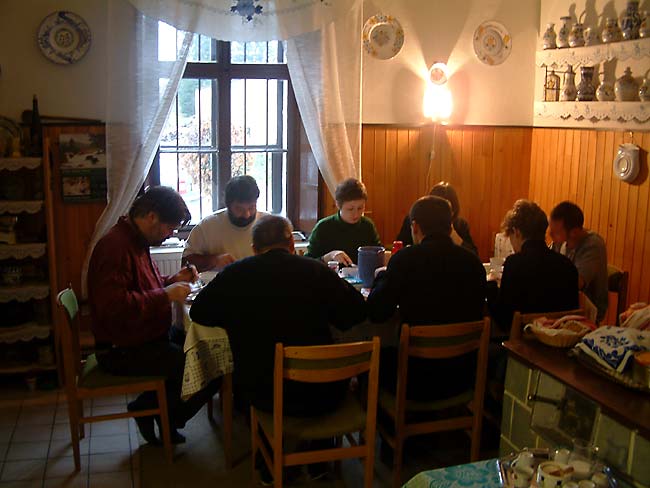 November 2., vasárnap - 7 órakor reggeli, majd indulás az Orségbe, vezetőnk U. Nagy Gábor, aki a reggeli közben bevezetőt mond a nap közben meglátogatott épületekről és az Orségről. Felkészülő kollégák: Dobrosi Tamás: Oriszentpéter, templom, Keseru szer, lakóház Tóthfalusi Gábor: Szalafő, Pityer szer, népi lakóépületek Szabó Gábor: Szentgotthárd, Zsidi út, családi ház Ujj Mészáros Krisztina: Kétvölgy, családi ház - az épületlátogatás után könnyu ebéd következik, közben beszélgetés U. Nagy Gáborral - ezután indulunk hazafelé, - útba ejtjük Pethőhenyét és megtekintjük a Makovecz Imre tervezte római katolikus templo-mot (Salamin Pál), illetve Kallósdot, a Szent Mihály kápolna miatt (Erhardt G.)