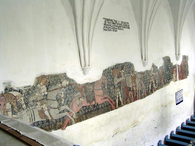 A Tiszteletes elfoglaltsága miatt egy kedves ifjú hölgy vezeti körbe a társaságot a templomvárban. Az áhitatos pillanatok eltöltésének keretét adó templom megfelelő helyzetben komoly hadigépezetként is működhet. Lőrések, szurokleöntő nyílások, védőbástyák, várfal, minden egyéb van itt. A bástyák helyiségében inycsiklandozó illatú szalonnatáblák lógnak, a falubéliek itt érlelik a csemegéket. A templombelsőben egy freskótöredéken a Szent László Legenda eseményei követhetőek.