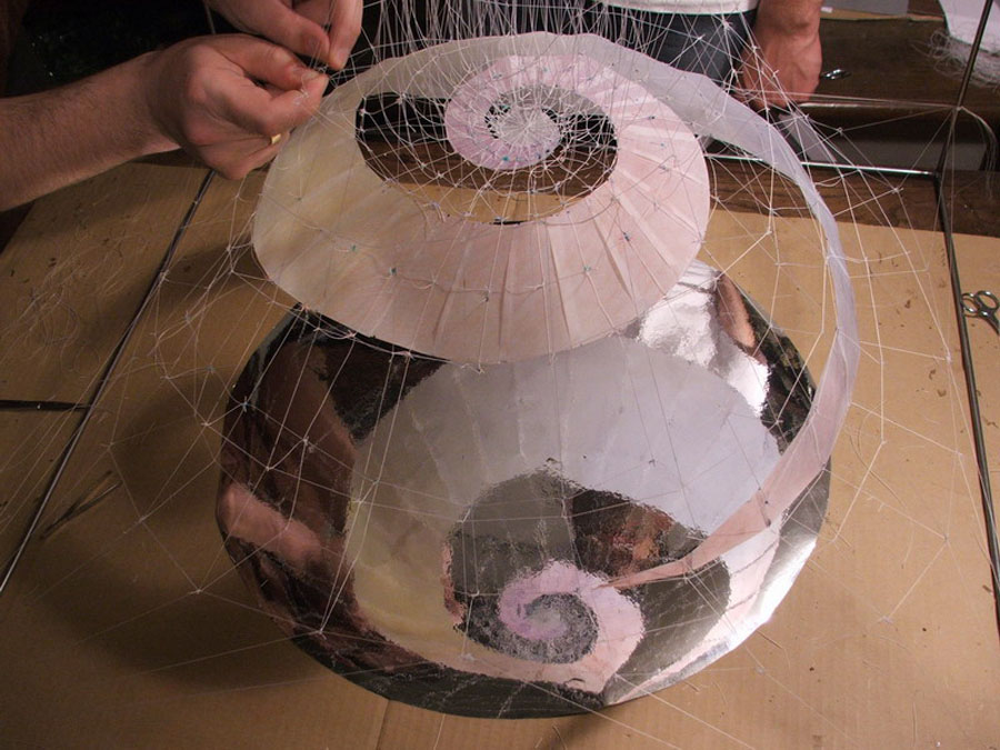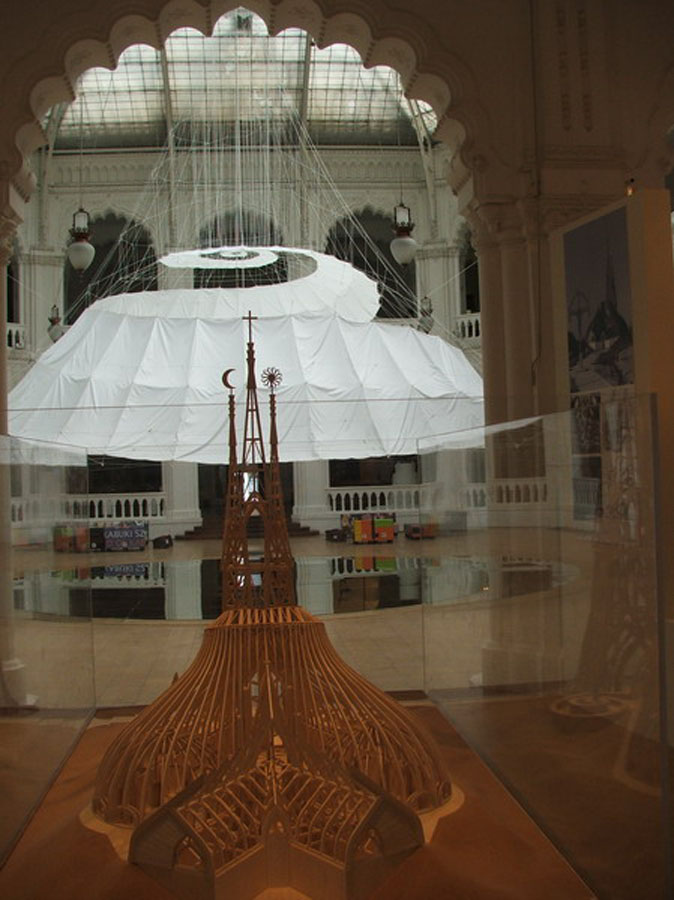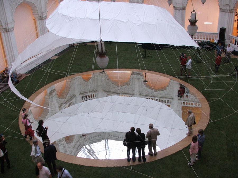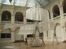 Az installációt igyekeztünk ?égi tüneményként" megjeleníteni, mely téri hatás - illúzió, mint Májá maga, a világmindenség. Fontosnak tartottuk tehát, hogy a tartószerkezet könnyed legyen, s minél kevesebb helyen érintkezzen a meglévő architektúrával.