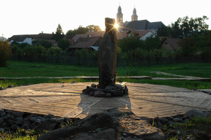 Krisztus kereszthalála. A Mestert a Golgota végtelen kiszolgáltatottságáig, és gyötrelméig a tanítványok közül egyedül János apostol követi. Az ő végső kitartására és hűségére emlékeztet mindenkit a napóra. A padozatba székely rovásírással rótt 12 apostolnév közül János helyezkedik el legközelebb a középponthoz. Az Ő neve találkozik minden nap du. 3 óra körül (a kereszthalál időpontjában) a Krisztust formáló sziklatömb árnyékával.