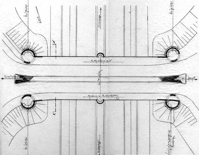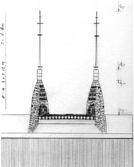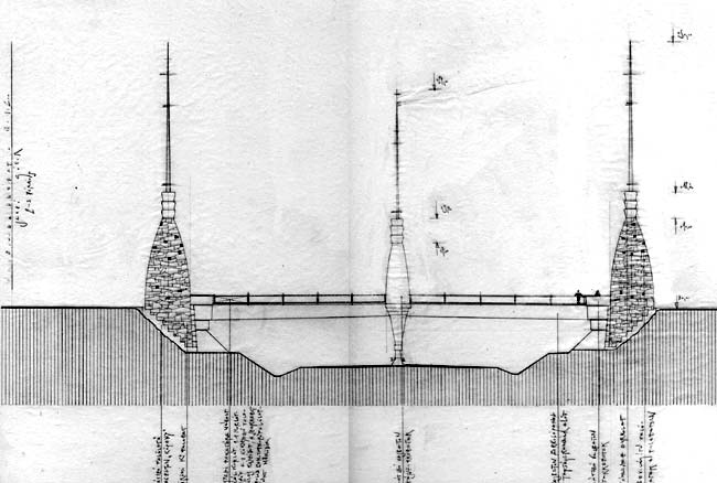 Tervemben a négy, a hídfőhöz előrehúzott toronyszerű építmény őrködik a főútvonal felett. Ezek veszik fel a megvilágítás feladatát. Az építmények nyitottak, bennük ülőfülkéket lehet kialakítani, ahol a gyalogosok és kerékpárosok megpihenhetnek a Budakalász és a Duna ág kőzött előttük álló úton. A közbenső alátámasztást elrejtendő-formálandó két kisebb toronyszerű fülke kerül elhelyezésre a híd középső részén, mely fülkék részben a főút középső elválasztó sávja fölé lógnak. A fémszerkezetű korlát négy méteres mezőkre osztva egyedi fekete fémszerkezet. Minden mezőt más környező település készíttet el azonos szerkezeti kialakításban, de az adott községre jellemző karakterrel.