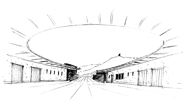 Az első vázlattervnél a tervező a domb aljába helyezve, a meglévő földalatti erjesztőtér hosszúkás tömegét követve alakította ki a feldolgozó funkciókat magába foglaló épülettömeget. Minden bizonnyal a terv mögött érezhető a borászattal kapcsolatos szakértelem megléte lehetett a fő kiválasztási szempont, mert második körben a megrendelő valami egészen más valamit szeretett volna látni. Nehezményezve az új tömeg túl hangsúlyos táji megjelenését, a funkciók teljes földtakarás alá rejtését kérte. Nem is sejtette talán, mennyire emberére talált ilyen tekintetben a tervezőben, ugyanis Sala már régóta kacérkodik támfalszerűen megjelenő borászati épületek különböző variánsaival. A földbe vájt belső udvarra szervezett feldolgozó egység ötlete azonban eddig tudtommal még máshol nem jelentkezett a mester életművében. A talán klasszicista eredetű főépület rekonstrukciójánál egyszerűbb a helyzet, több hasonló megvalósult tervét ismerhetjük Ferencünknek, így ehhez is biztos kézzel nyúlt.