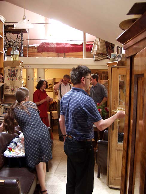 Az üzem bejárása végeztével, az étterembe betoppanván e díszletszerű hatás úgyszólván farsangi hangulatba csap át. A belső falak plasztikai megformálása falusi utcát varázsol elénk, belső tetőkkel, oromfalas homlokzatokkal. A látszótető elé magasodó oromzatok humorosan elgörbülnek, s mind az éttermi részből, mind a kostoló-szobából nyílnak a konyháéval megegyező formájú, de csupán a falba vezető csali-ajtók -a gyakorló pincérek legnagyobb örömére.