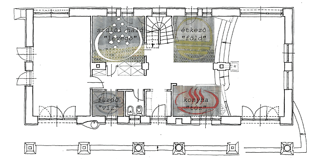A hagyományos magyar háromosztatú falusi ház, ahogy neve is mutatja egyfajta örök hármasságon alapszik. Ez legalább annyira rejtett metafizikai dolog, mint kézzelfogható, anyagi valóság. E hármasságot én a föld és az ég, illetve a természetes és a művi környezet között való elhelyezettségben látom megvalósulni. Ennek szemléltetésére álljon itt néhány fogalomsor: