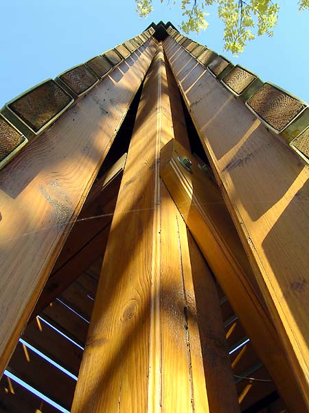 Hallom, hogy gondok voltak a torony íves szarufáinál... Hiányzott a konszignáció s a kedves kivitelező darabokból próbálta össze passzítani a tetőt. Nem ment. Laci leszedette.