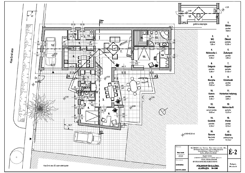 A program, melyet a megbízó kigondolt, mindkét esetben közepes méretu, tetotér-beépítéses lakások elhelyezése, elokertes parkoltatással, s hátsó, ill. belso kerthasználattal.