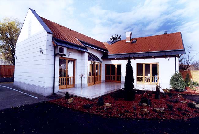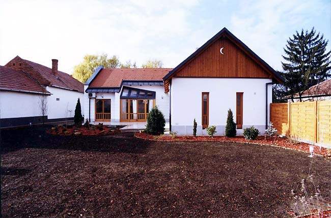 Hosszú ideje bírkózom e ház mondanivalójával, érdekesen szabdalt belső tereivel, alaprajzi funkciósémájával. Figyelemmel kísértem az alakuló, komótosan formát öltő terveket, láttam a kemény vonalak lassú testet öltését, földből való "kinövekedését", és tanúja voltam utolsó simításként a klímaegység felszerelésének is. Mindeközben azon törtem a fejem, van-e egyáltalán létjogosultsága háromosztatúságról, népi építészetről, hagyományokról beszélni, miközben a 21. század gyökeresen más igényeket támaszt az építésszel szemben.