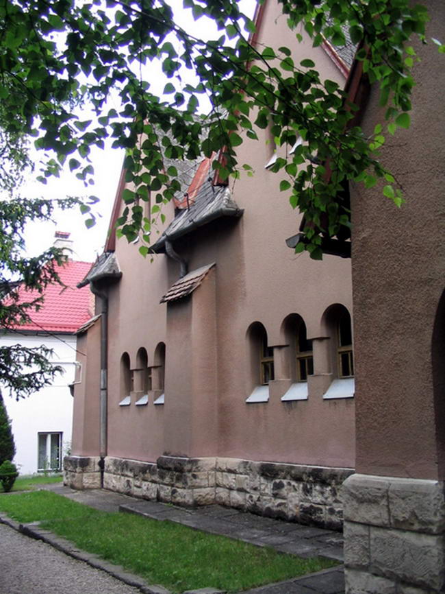 Másnap Kolozsváron a Monostori úti református templomot néztük meg. Kós második templomterve, mégis nagyon sok mindenben mutatja az építész fent ismertetett elveit -a keresés első, regionalista eredményt hozó korszakában épült. Főtömeg mellé helyezett négy fiatornyos torony. Applikatív architektúra alig van, csak a kapu és a szecessziós - romaneszk sorablak- ez utóbbi aztán még sok változáson ment keresztül. A templombelső alapvetően román stílusú - csak nem olyan, mint a historizmus neorománja - ennek megfelelően elég sötét is (ez Kós Károlynak és nekem tetszett, azonkívül senki másnak). A tér a korabeli református liturgikus reformnak megfelelően longitudinális, Kós mégis belecsempészett egy kis protestáns otthonosságot, azzal, hogy nem adott középfolyosót, hanem padokkal vette körbe a "templom piacát".