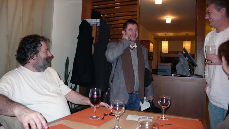 Az első este visszatekintettünk az elmúlt 20 évre. Mi történt az egyesülés életében, kik léptek be, mikor milyen építészirodák csatlakoztak az egyesülés szellemiségéhez, nem csak szimbolikusan, de tevékeny jelenléttel, aktivitással, de a mesterek visszaemlékeztek arra is, hogy mikor ki lépett ki az egyesülésből, s hogyan is zajlott a rendszerváltás. Történet történetet követett, és jó volt hallgatnia mestereket, anekdotákat, s fiatal vándorként, mintegy bepótolni a lemaradást, amit persze behozni, átélni már nem lehet soha igazán, hiszen a múlt nem hozható vissza, csak közös emlékképpen, de aki nem volt ott, az meg nem értheti a pillanatot. Még ugyanezen az estén, a késői ünnepi, szülinapos ünnepeltek felköszöntésétől gazdag vacsora után, egy kisebb téli, havas sétát követően egyik mesterünk, Jánosi János borpincéjét tekinthettük meg, nem csak építészeti szemmel. A rettentő hidegben elfagyott kinek keze, kinek lába, de talán mindenki arcán meghúzódtak az izmok, mikor az első korty pálinkát, vagy bort torkára hörpinthette. A séta kellemes volt, ki-ki a maga párját, társaságát megtalálva igazi éjszakai beszélgetésekben elegyedve érkezett a kis házhoz, pincéhez. A közös borozgatás mindenkit jó hangulatba emelt, azt is, aki korábban esetleg egy pillanatig is akár, de rosszabbul látta épp jelen helyzetét.